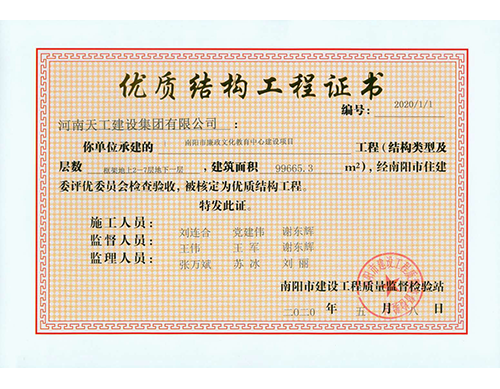 優(yōu)質(zhì)結(jié)構(gòu)工程證書