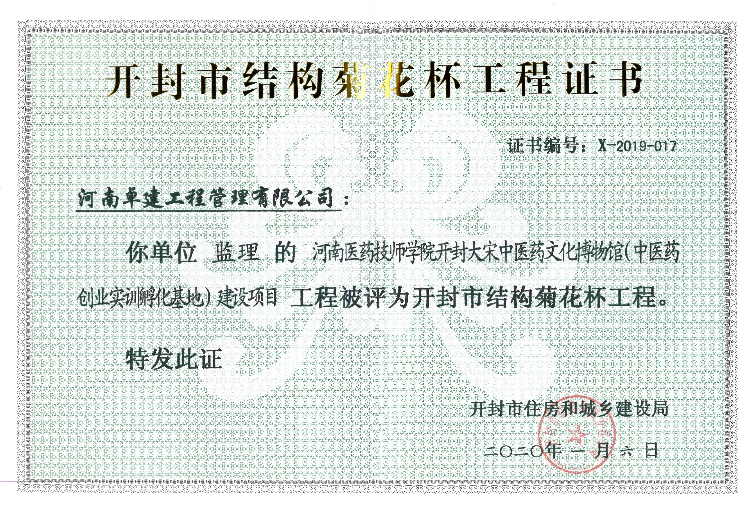 被開封市住房和城鄉(xiāng)建設局評為開封市結構菊花杯工程