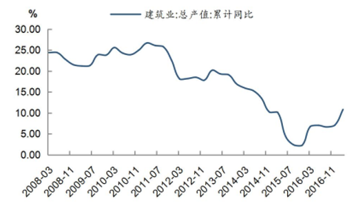 2017 年建筑業(yè)總產(chǎn)值及增速預測